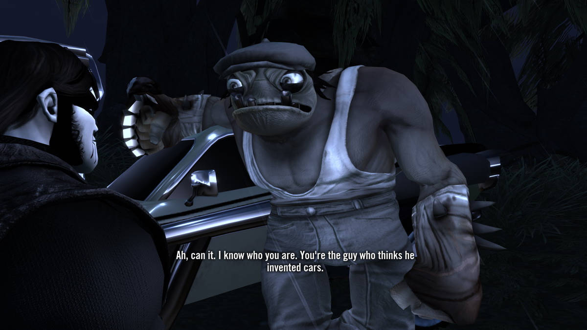 Pour le reste, je vous laisse le plaisir de découvrir un scénario un peu bidon qui enquille les clichés : sauver les filles en détresse, libérer les esclaves, délivrer l'amour de sa vie... le fond n'est pas vraiment palpitant. D'ailleurs la mise en scène n'est pas terrible, avec beaucoup de bugs, de déplacements intempestifs et même d'animations pas super travaillées. Mais ce qui sauve l'ensemble, ce sont des expressions faciales plutôt bien faites, l'humour et les clins d'œil. Un humour cher à Tim Schafer et qui fait encore une fois mouche. Certes un peu potache, un peu balourd par moment, il n'empêche que l'ensemble fonctionne à merveille et sans dire que vous allez esclaffer de rire, à minima vous sourirez de bon cœur.
