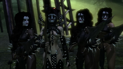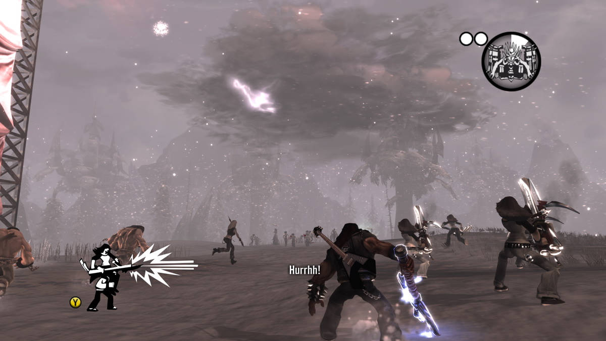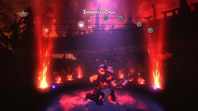 Les invocations faites à la guitare sont assez marrantes car elles s'apparentent à une courte séquence de Guitar Hero/Rock Band, un peu comme une longue succession de QTEs : il suffit d'appuyer en rythme sur une séquence de touches, et le tour est joué ! Après, la plupart du temps ça reste du beat-them-all classique et peu fin, avec la petite particularité qu'on a souvent des troupes à nos côtés. Ainsi à la façon de l'excellent Overlord, on peut envoyer ses "larbins" à l'attaque, leur intimer de rester à côté ou encore de garder et protéger une position.