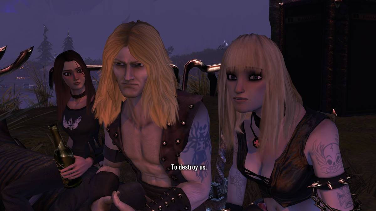 On nous parle de concerts, de riffs, de bassiste guérisseur, de Titans du rock, de gardien du métal... il est clair que si vous êtes allergique à la guitare électrique, fuyez ! Si par contre revenir à ce son qui n'est jamais passé de mode et vous force à secouer la tête comme si vous aviez les cheveux longs et sales lors d'un concert de Woodstock... alors ce jeu va vous donner des frissons de plaisir ! Sa force est donc là, sa bande-son et son univers contribuent grandement au plaisir de jouer.