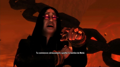 La réalisation ne brille pas forcément mais la bande-son est jubilatoiredoublage, chez nous Eddie Riggs profite naturellement de son doubleur officiel (à savoir Christophe Lemoine) et question travail voxographique on retrouve quelques pointures comme Laura Blanc (doubleuse officielle de Jennifer Garner ou Kate Beckinsale), Gérard Surugue (plutôt connu dans le métier notamment pour la télévision, le cinéma et quelques doublage de jeux vidéos... d'ailleurs il fait très bien Ozzy Osbourne), Philippe Catoire (qui bosse, lui aussi, beaucoup pour la télé et le ciné, niveau jeu il a fait récemment la voix du maire Clayton dans RAGE ou l'Homme Trouble dans Mass Effect 2) ou encore Marc Alfos qu'on ne présente plus et qui a fait entre autre David Sarif dans Deus Ex : Human Revolution. Malgré tout ce beau monde, le doublage français n'est pas top qualité. La synchro fait du yoyo (un coup c'est calé, le coup suivant ça ne l'est plus) et puis le ton n'y est pas toujours. Alors certes, la direction humoristique du titre fait que ça passe mieux, mais il n'empêche que je n'ai pas été emballé par le doublage.