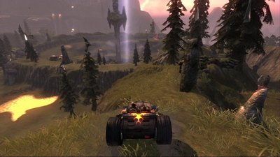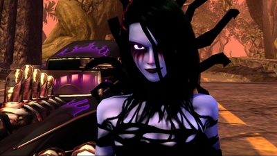 Après s'il est vrai que le gameplay ne brille pas de mille feux, que les combos sont trop peu nombreux, que les véhicules (la destroy-mobile, le chopper ou n'importe quel allié dont on prend les commandes) sont injouables et la difficulté vraiment au raz des pâquerettes, il n'empêche que Brütal Legend se montre efficace, étonnamment varié et que le fond se montre finalement plus étoffé qu'on le croit. Par contre au niveau de la réalisation, il est clair que nos consoles ont vu bien mieux. Le titre arbore un design cartoon qui le rend immédiatement "léger" au niveau de son ambiance. Il faut dire que son humour va également en ce sens. Et en effet, les proportions ne sont pas du tout respectées, Brütal Legend faisant plus dans la caricature façon dessin-animé que dans le réalisme (on notera quand même que les filles sont restées jolies :).