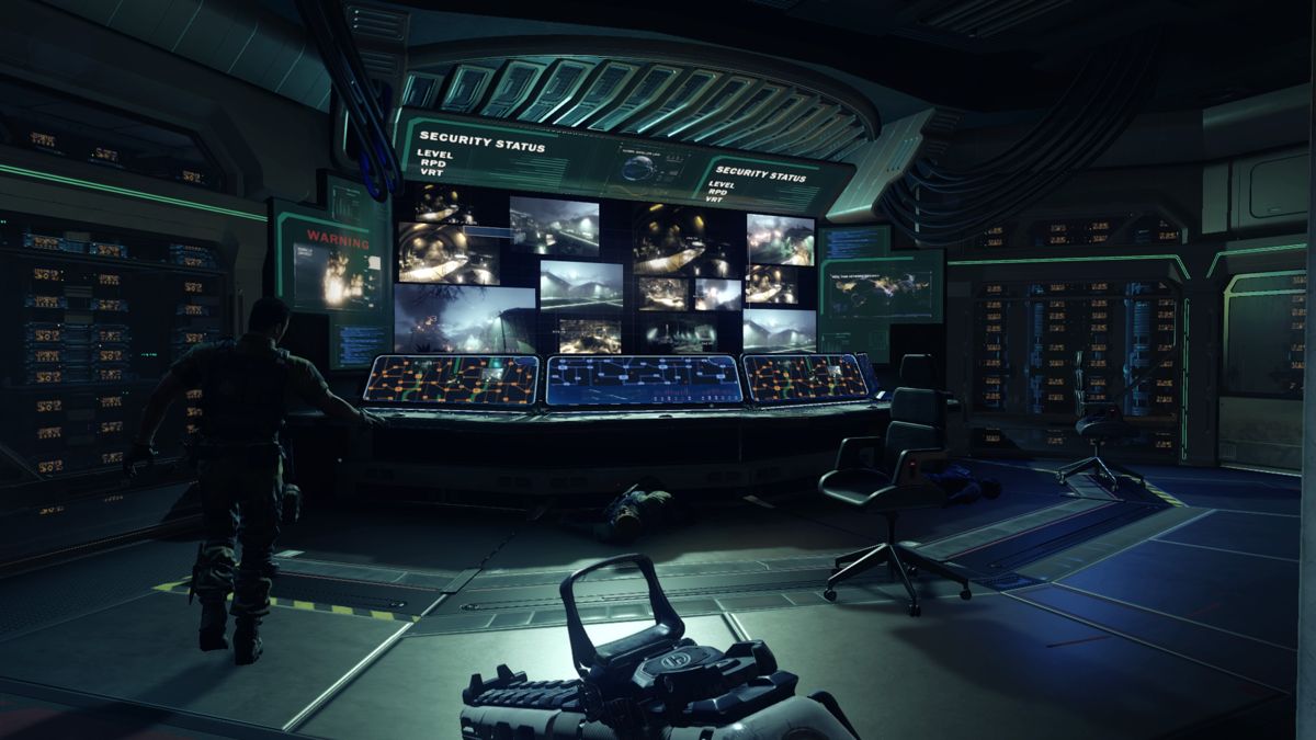 Côté bande-son, on profite des compositions de Jack Wall, qu'on connait pour ses nominations sur quelques gros titres tels que Mass Effect, Mass Effect 2 ou encore Black Ops II. L'homme n'a pas un palmarès long comme le bras mais généralement il fait du bon boulot. C'est à nouveau le cas ici, avec des musiques assez futuristes et dans le ton. Souvent vaporeuses, parfois mélodieuses, certes ça n'a pas le panache de l'OST que Hans Zimmer a composé pour Modern Warfare 2 (2009), mais en attendant, la musique souligne parfaitement l'action à l'écran, et propose même des compositions qui rappellent sans mal Deus Ex : Human Revolution, lorsqu'on se retrouve au QG notamment. Bref, l'OST m'a beaucoup séduit, en évitant notamment les basiques flon-flon orchestraux qu'on a coutume d'entendre. D'ailleurs je suis heureux de voir que les errances de Black Ops II (qui mélangeait ambiance science fiction et musique Electro bas-de-gamme alors que les 2 ne sont nullement liés) n'ont pas été reconduites.