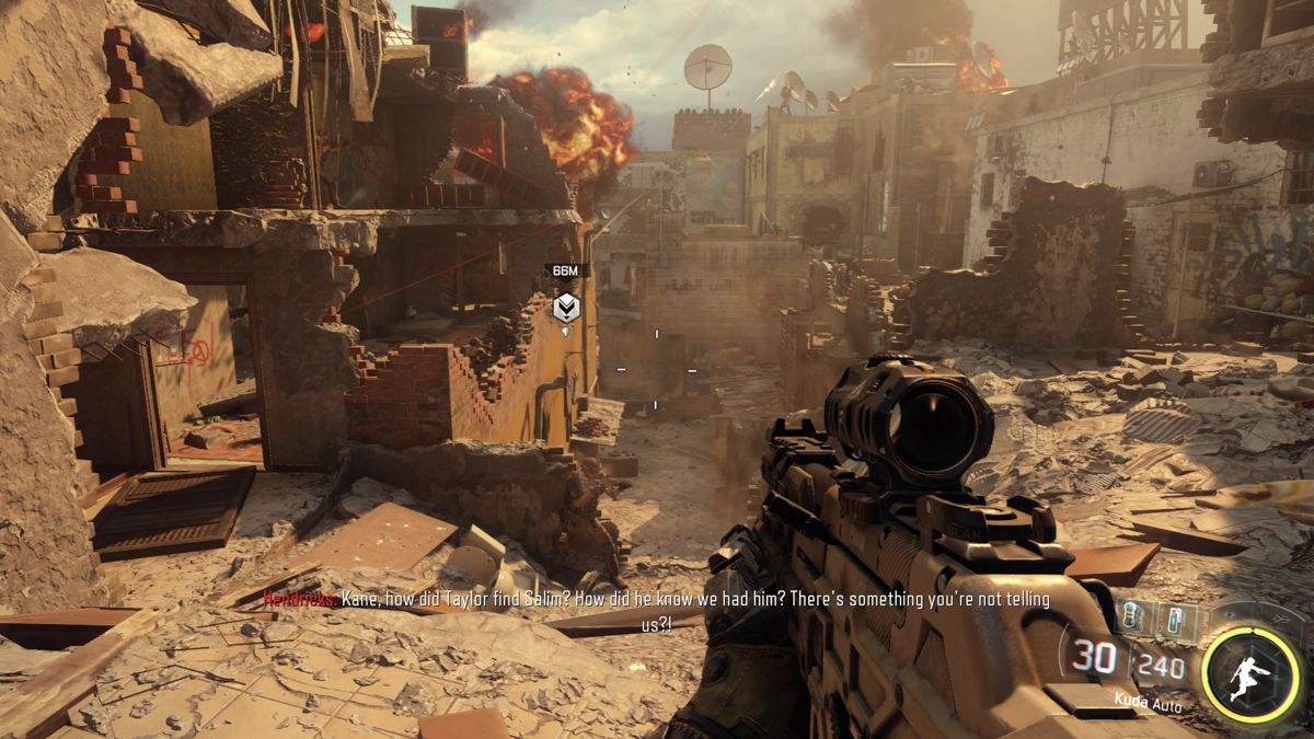 Du Light RPG dans un CoD, ma foi pourquoi pas. Le problème, c'est qu'une fois encore, le concept reste très limité côté de ça, Black Ops III est un peu le vilain petit canard de la série (sans parler du 4e opus qui ne dispose même pas de véritable solo), puisqu'ici il ne sera nullement question de la famille Mason, de Hudson, ou de Woods, etc. Difficile de retrouver l'ambiance des anciens opus, d'autant que l'histoire se déroule sur une unique "timeline", faisant de Black Ops III un épisode définitivement tourné vers la science-fiction. Ceci dit j'en reviens toujours au fait que le scénario n'est pas mal écrit, ou mal mis en scène, mais que le tout reste finalement assez banal. Malgré le contexte, on aurait pu s'attendre un millier d'événements hors du commun et pourtant, Treyarch a été très frileux à prendre le moindre risque. Une déception quand on repense à un Black Ops II avec sa double timeline, ses choix, ses multiples fins et sa mise en scène explosive... alors que le jeu est sorti 4 ans auparavant sur l'ancienne Génération...