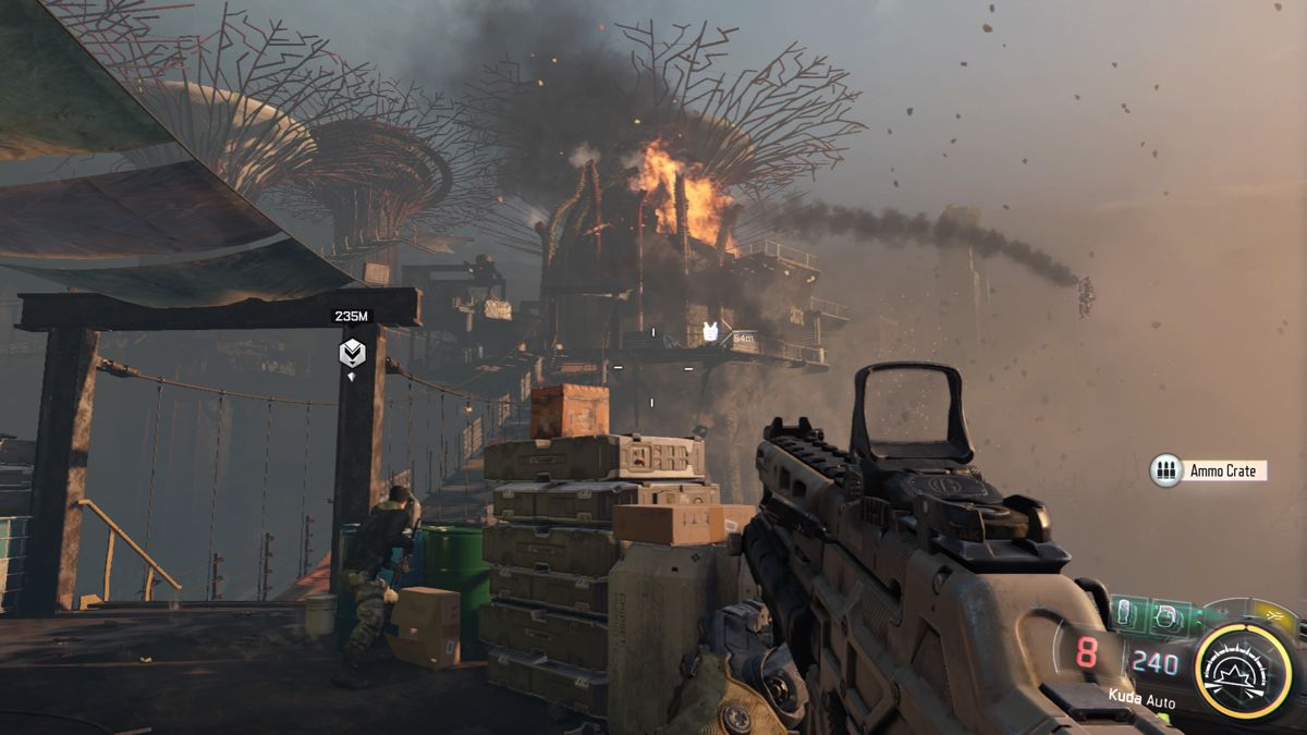 On commence tout d'abord par ce même Black Ops III, dont les versions PlayStation 3 et Xbox 360 sont sorties au même moment que celles qui nous intéressent vraiment. Nous le savons, Black Ops III a été développé par Treyarch (avec Raven en studio de soutien), cependant les versions Xbox 360 et PS3 ont été adaptées par Beenox et Mercenary Technologies. Le parc d'anciennes consoles étant énorme (environ 160 millions de machines dans le monde) et la Next-Gen des PlayStation 4 et Xbox One étant encore jeune (2 ans), Activision ne pouvait pas faire l'impasse sur cette potentielle part de marché. Naturellement, les graphismes sont de moins bonne qualité, ils sont même en dessous du très bon Black Ops II, en plus de ne tourner qu'en 30 fps. En somme, ces consoles sont en fin de vie et elles devraient être ultra maitrisées, mais on nous livre des portages bas-de-gamme. Cependant ces versions n'ont pas été testés par nos soins. Pourquoi ?