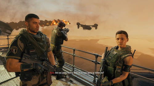Car si on apprécie que l'aventure principale soit un peu plus longue que d'habitude (environ 9 heures contre 7 généralement), le jeu est moins impressionnant que ses prédécesseurs, il est un peu moins orienté sur le grand spectacle, en voulant sans doute apporter une touche de réalisme qui ne colle pas si bien que ça à la série. La preuve, on affronte des méchas géants mais ils restent assez rares et les grosses scènes bien oufesques, se font finalement laisser désirées, alors que justement, le contexte futuriste se prêtait à merveille à une débauche d'effets pyrotechniques et autres situations qu'on ne vit que dans un "Call of" justement.