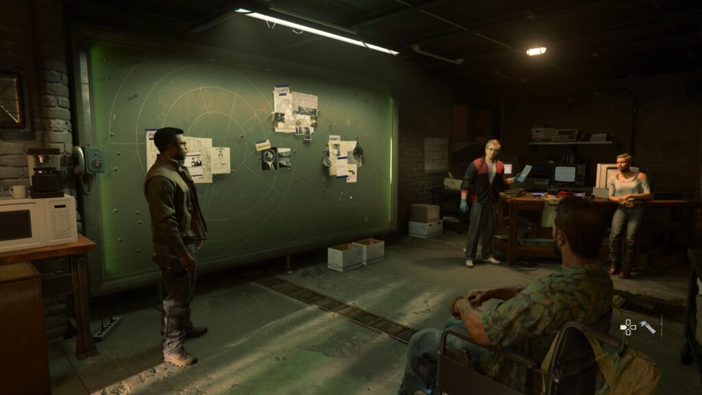 La planque est sympa, le jeu est piste est pas mal non plus, mais j'aurais préféré de vraies missions secondaires 1.5 oblige, on retrouve donc la fameuse planque, qu'on pourra visiter mais dont on ne pourra pas trop s'éloigner (dommage, j'aurai bien fait un tour dans la forêt et piquer une tête à l'occasion :). Cette fois ce n'est pas un vieil hangar poisseux, la planque est une belle et grande maison type chalet montagnard, et on y trouvera un jeu de pistes, ainsi que les PNJs avec qui discuter. Contrairement à Bell, Case n'a pas droit à des bonus passifs d'entrée de jeu, à la place, il faut récolter de l'argent pour développer 3 nouvelles zones de la maison, qui en contrepartie, vous offriront ces fameux bonus. Même si ça reste facultatif, je trouve ça sympa. Après on retrouve l'inévitable tableau des preuves afin de lancer les missions, même si je trouve un peu dommage de ne pas retrouver les (vraies) missions secondaires d'autrefois (le jeu de pistes tentant difficilement de les remplacer). Notez au passage que le jeu ne propose qu'une seule fin et qu'il n'y a cette fois, pas de borne d'Arcade pour faire joujou entre 2 niveaux, ni de mode Dead Ops. Dommage...