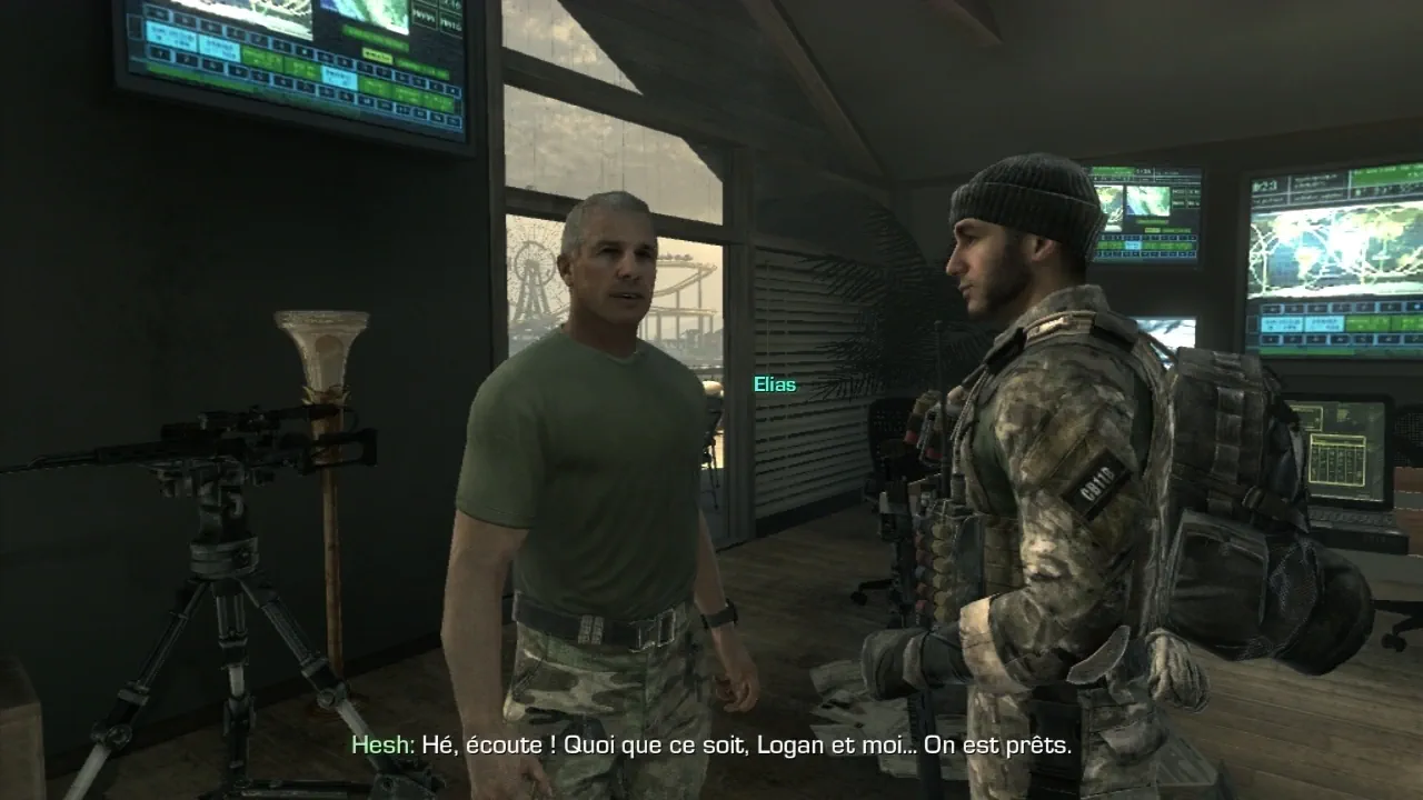 Dans le lot, le personnage que nous contrôlerons majoritairement se nomme Logan Walker, d'ailleurs c'est bien le premier épisode moderne où on ne changera pour ainsi dire jamais de protagoniste (sur la base d'un flashback, nous ne prendrons le contrôle que d'un seul autre personnage-clé). Le mode campagne s'ouvre sur une superbe introduction (en images de synthèses). En fait, si l'aventure est composée de 18 chapitres, à chaque fois une vidéo fera avancer l'histoire et le jeu en profitera pour charger ses données en tâche de fond. Un processus qui n'est pas nouveau (surtout sur cette saga) mais qui se veut toujours aussi efficace (c'est tellement mieux que d'avoir une image fixe ou un écran noir). A l'intérieur des chapitres nous aurons ensuite de classiques cut-scenes gérées en temps réel.