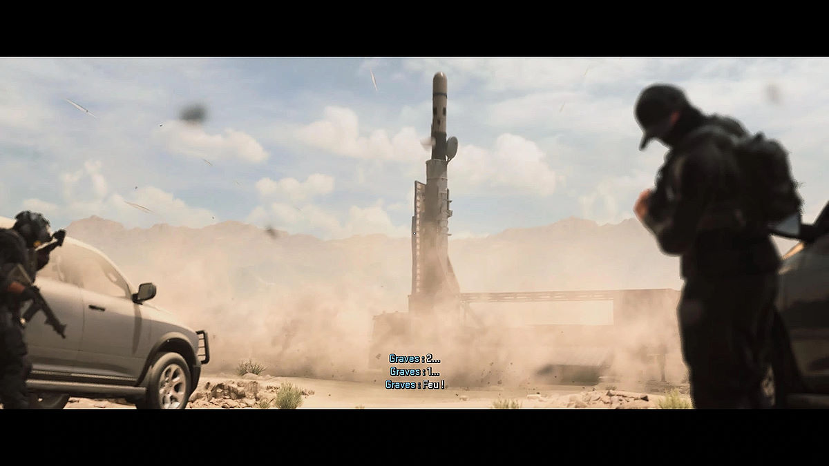 Quelques pics de difficulté viendront allongé une durée de vie déjà classique pour la série. Au final, MWII vous tiendra 8 à 10 heures Enfin pour Graves, c'est l'acteur François Civil qui prête sa voix, dont c'est le premier job de doublage. Rien à redire, il a assuré et son timbre colle bien au personnage. Comme je le disais, Infinity Ward a mis le paquet pour que sa narration soit "tirée aux 4 épingles" (aaah les vieilles expressions françaises ^_^), avec un excellent doublage et une mise en scène digne d'un film hollywoodien. Et le moins qu'on puisse dire, c'est que ça marche sacrément bien ! Et si le scénario peut paraitre assez simpliste et convenu en début d'aventure, il prend une intéressante tournure vers les 2/3 de l'aventure, ce qui relance de façon séduisante tout l'intérêt de cette campagne qui varie énormément les décors autant que les situations.