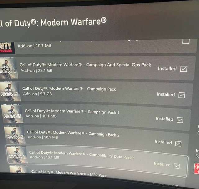 Voilà pourquoi Infinity Ward et Treyarch ont centralisés l'offre, afin que les joueurs puissent installer le contenu dont ils ont besoin. Mine de rien, Modern Warfare II et III ne m'ont causés aucun souci et certes le Blu-Ray ne contient rien, mais quand on regarde de plus près, le Blu-Ray de Modern Warfare 1 n'est pas mieux loti car à part une vétuste version de Warzone (inutilisable en l'état), le disque n'en propose finalement pas plus, le jeu étant impraticable en l'état. Bref, je vous passe les détails (sachant que chaque pack pèse environ 20 Go), malgré la Fibre il a fallu des plombes pour tout télécharger, et au final mon Modern Warfare pèse pas moins de 152 Go ! Quand je vous dis qu'on marche sur la tête avec cette série...