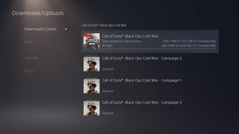 Et voilà que les Black Ops Cold War et Modern Warfare 2019 débarquent enfin. Super, je me suis dit que via le lobby, j'allais gérer ça tranquillou. Et bien pas du tout ! J'ai apprécié que justement le HQ de Call of Duty me demande ce que je voulais installer, afin d'éviter de trop surcharger le SSD de ma console, mais ces 2 derniers étant trop anciens, ils sont encore soumis à l'ancienne formule. On commence donc par Black Ops Cold War (car j'ai vraiment gardé un mauvais souvenir du premier Modern Warfare, donc j'ai préféré l'installer en dernier) qui de son côté, s'installe de façon "normale". Comprenez par là que la console va installer pas moins de 35 Go depuis le Blu-Ray, qui seront ensuite updatés par 99 Go (!) de téléchargement. No comment, c'est énorme et pourtant, ce n'est pas terminé...