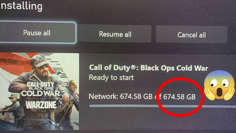 A partir de là, Black Ops Cold War a tout téléchargé depuis Internet, sans me demander si je voulais uniquement le mode Campagne. Résultat, un énorme cul de 363 Go s'est installé sur mon SSD ! Vous avez bien lu, 363 Go pour 1 seul jeu ! Sérieux quoi, on va où là ? Chez Treyarch on n'a pas été foutu de compresser un peu les données ? Franchement, les gars en charge de l'optimisation devraient pointer au chômage, c'est pas possible autrement. Et dire qu'on râle parfois pour les 110 Go d'un Red Dead Redemption II ou les 120 Go d'un Horizon Forbidden West... croyez-moi, c'est fini, je ne dirai plus jamais rien tant je suis sur le fion de voir un tel je-m'en-foutisme !! Et encore, je ne plains pas trop car certains ont eu des installations 2 fois plus volumineuses que moi, dépassant largement les 600 Go... tout simplement lunaire !