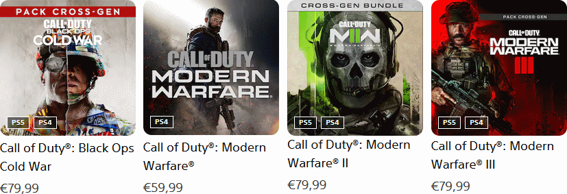 Ce fut mon cas, j'ai payé environ 15€ chaque jeu (d'occaz' bien sûr), alors que tous coûtent affreusement cher sur les Stores : Modern Warfare 2019 coûte toujours 60€ (c'est abusé pour un jeu qui a 6 ans, mais quand on voit que la version remasterisée de COD 4 coûte 40€, on se dit qu'il n'y a plus de limites), quand Black Ops Cold War et les Modern Warfare III et III coûtent tous 80€ pièce. En sachant ce que je fais de mes jeux (solo only !), j'estime avoir payé le juste prix. Je vous laisse voir ci-dessous les tarifs pratiqués en 2025 sur le PS Store de la PlayStation 5, pour des jeux qu'on trouve à moins de 20€ d'occasion. A part ça, le dématérialisé c'est l'avenir... c'est sûr et certain même ! Un bel avenir de merde si vous voulez mon avis.