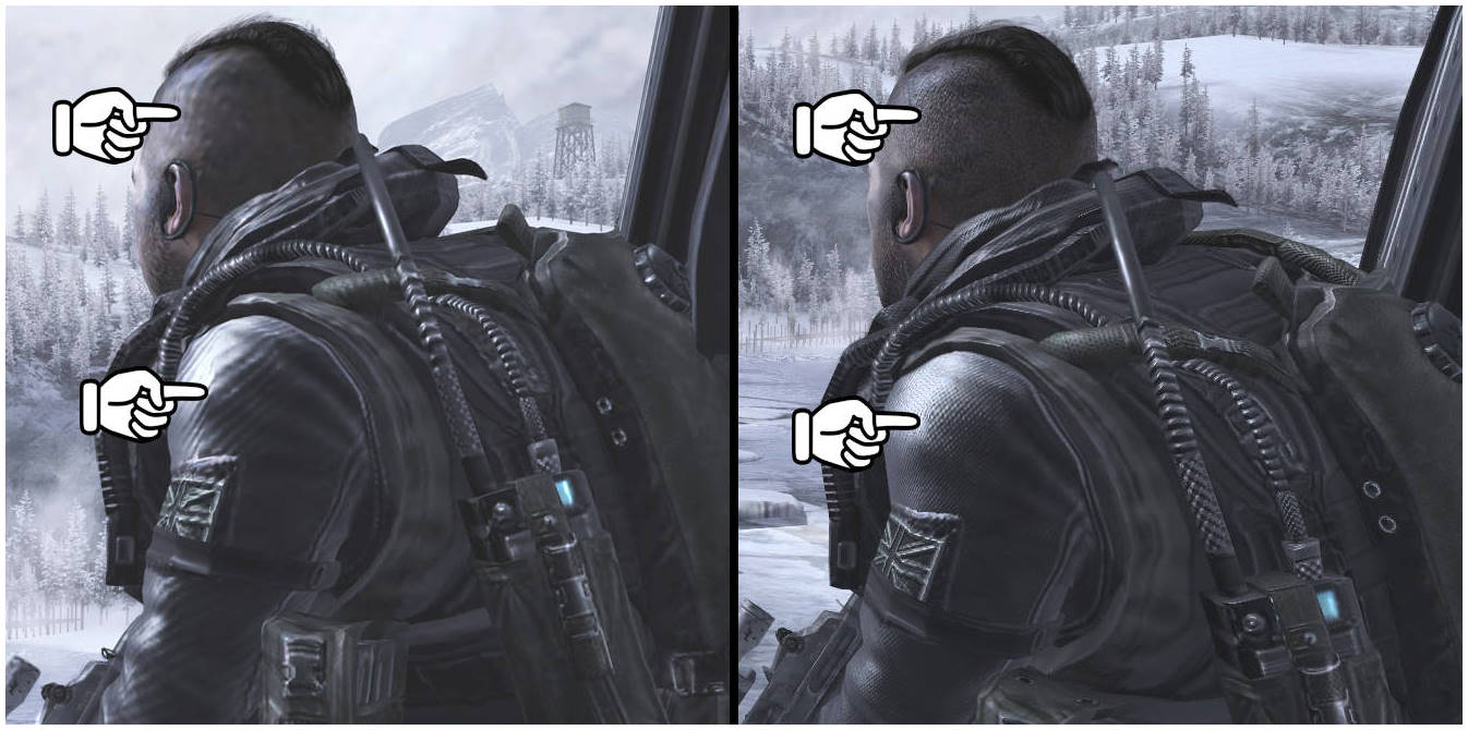 Modern Warfare III utilise le IW Engine 9 et globalement, c'est beau ! Sauf lorsqu'on désactive le streaming... là ça devient vite moche sans surprise, Modern Warfare III utilise l'exact même moteur que Modern Warfare II. A vrai dire les 2 jeux sont intimement liés et il est clair qu'en vu de s'économiser un maximum de travail, les développeurs ont repris le plus de contenu possible : textures, animations, gameplay, etc. Et déjà là, ça se voit. Alors que les Modern Warfare ont toujours été des exemples à suivre, notamment en termes d'animations, ici on sent que ça manque parfois d'aboutissement. Le meilleur exemple que j'ai, c'est lorsqu'on est sur le toit d'un immeuble à traquer Andrei. Une fois appréhendé, Price prend un bouclier anti-émeute et fait tout son possible pour nous couvrir. Et bien ici, on voit clairement où est le problème : Price ne bouge qu'à peine les jambes, il tourne sur lui-même comme un robot... pas besoin de vous faire un dessin, ça manque de détails, tout ça parce que le développement a été rushé.