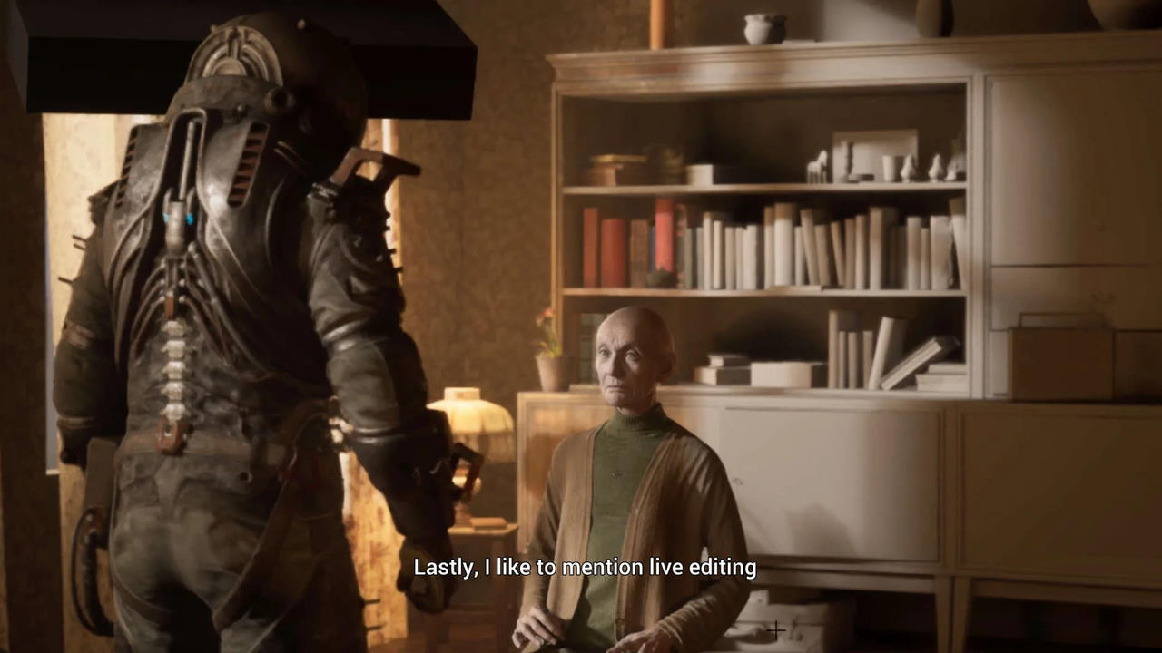 On termine par la partie audio qui, comme à son habitude, ne propose un doublage qu'en VOST. Alors je sais, les jeux en VF ne sont pas obligatoires, notamment lorsque le studio est modeste. Maintenant sachez que la Bloober Team commence à avoir une certaine notoriété et dans Cronos, les dialogues sont finalement assez rares. Mieux encore, rares sont les cinématiques mettant en scène des humains, donc pas besoin de gérer des grosses expressions faciales et de la synchro labiale... bref, c'était l'occasion de sauter le pas. D'autant que lorsqu'on peut se payer de la motion capture, je pense sincèrement qu'on peut se payer des doubleurs, non ? A la place, on a une Kelly Burke qui parle de façon monocorde, avec naturellement sa voix étoffée dans son autocuiseur vapeur au design à coucher dehors. J'en remets une couche là-dessus, il aurait été nettement plus agréable de voir son visage derrière une visière (au moins pour apprécier les expressions des yeux) et d'entendre une voix française. OK c'est un peu plus de boulot, mais bon sang pour l'immersion, c'est sans pareil !