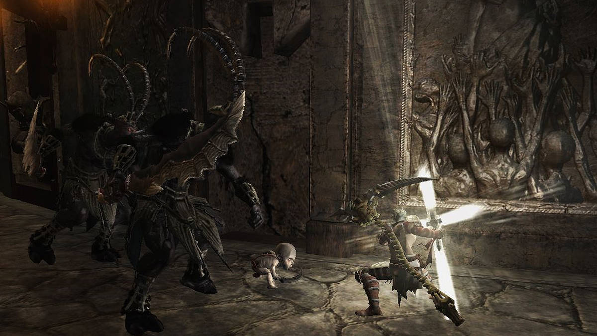Il y a quand même quelques facettes intéressantes et originales à ce titre comme le contrôle des bestiaux, la possibilité de punir ou d'absoudre un ennemi ainsi qu'on s'en doute, toute une panoplie de combos plus ou moins simples à réaliser. 60 upgrades sont ainsi "achetables" via un menu inspiré de Dead Space et il faudra bien ça pour éviter de se lasser d'un gameplay très redondant, propre au genre. Pourtant, même si on ne possède qu'une seule arme pour tout le jeu (la Faux de la Mort), elle est puissante, les combos sont bien sympas et elle partage ses attaques avec la Croix de Béatrice, véritable pouvoir divin dont on peut se servir à l'infini et qui tue les ennemis à distance.