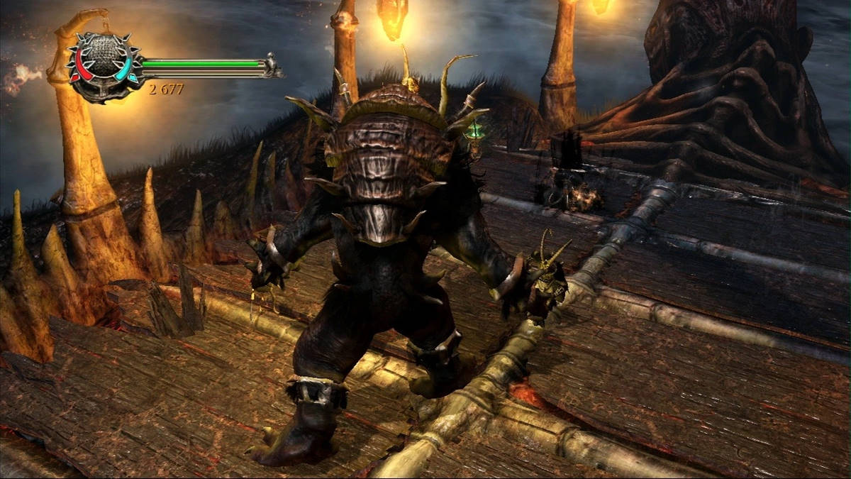 Le gameplay parait simple mais en fait il est suffisamment riche et complet pour que ce soit funsera donc l'année des gros beat-them-all. Engoncé entre un Bayonetta qui a fait un trop de bruit à mon goût (même si j'avoue que c'est un bon jeu) et un excellent Darksiders (qui lui n'en a pas assez fait, de bruit), Dante's Inferno (l'Enfer de Dante) sort peu de temps avant que le gros blockbuster de la PS3 ne vienne remettre tout le monde d'accord, j'ai nommé God of War III. Plus connu pour son excellent Dead Space que son un peu plus décevant Parrain 2, Visceral Games marche ici sur les plates bandes de... God of War justement. Pris à la louche, si on change Dante en Kratos, on s'y croirait presque. Des QTEs pour finir ses ennemis ou pour déglinguer les plus gros boss, le stick droit pour faire des évitements, une touche pour bloquer les attaques, une touche pour les coups rapides, une autre pour les coups puissants, des pouvoirs magiques liés à une jauge de mana... ça sent le déjà-vu.