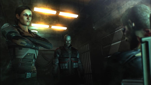 Une fois libéré, notre personnage part, à mains nues, dans une séquence de jeu totalement dévouée à l'infiltration. En effet, au départ nous n'avons que "la bite et le couteau" (et encore, on n'a même pas de couteau ! ^_^) donc il faut vraiment faire profil bas. Et comme nos augmentations de piratage se sont également envolées, on est aussi pas mal bloqué par tout ce qui est barrière laser et portes à digicode. Je n'en dis pas plus sur la suite des événements, sachez juste que Belltower mène de drôles d'expériences, des choses pas bien avouables et que ce sera à vous de tout dévoiler au grand jour.