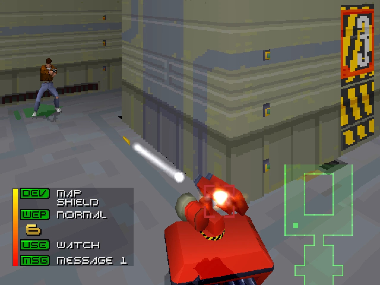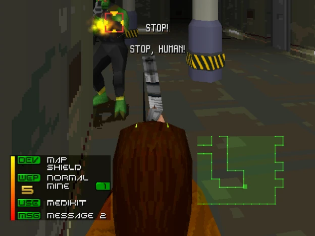Malgré ses graphismes tout en 3D et sa vue à la 3e personne, finalement assez loin du premier épisode, on retrouve malgré tout la plupart des composantes du jeu d'origine. Nous disposons d'un flingue à munitions illimitées (d'autres munitions, plus performantes, sont à trouver mais évidemment, les quantités sont limitées), on transporte quelques objets (dont des mines pour l'auto-défense) et pour se protéger, nous avons un bouclier qu'on peut recharger via des bornes. L'interface n'est pas des plus intuitive mais elle suffit, et on dispose d'une carte des lieux. La carte part d'une bonne intention seulement elle reste toujours fixe, elle ne tourne pas en même temps que nous. Résultat, son intérêt est largement amenuisé.