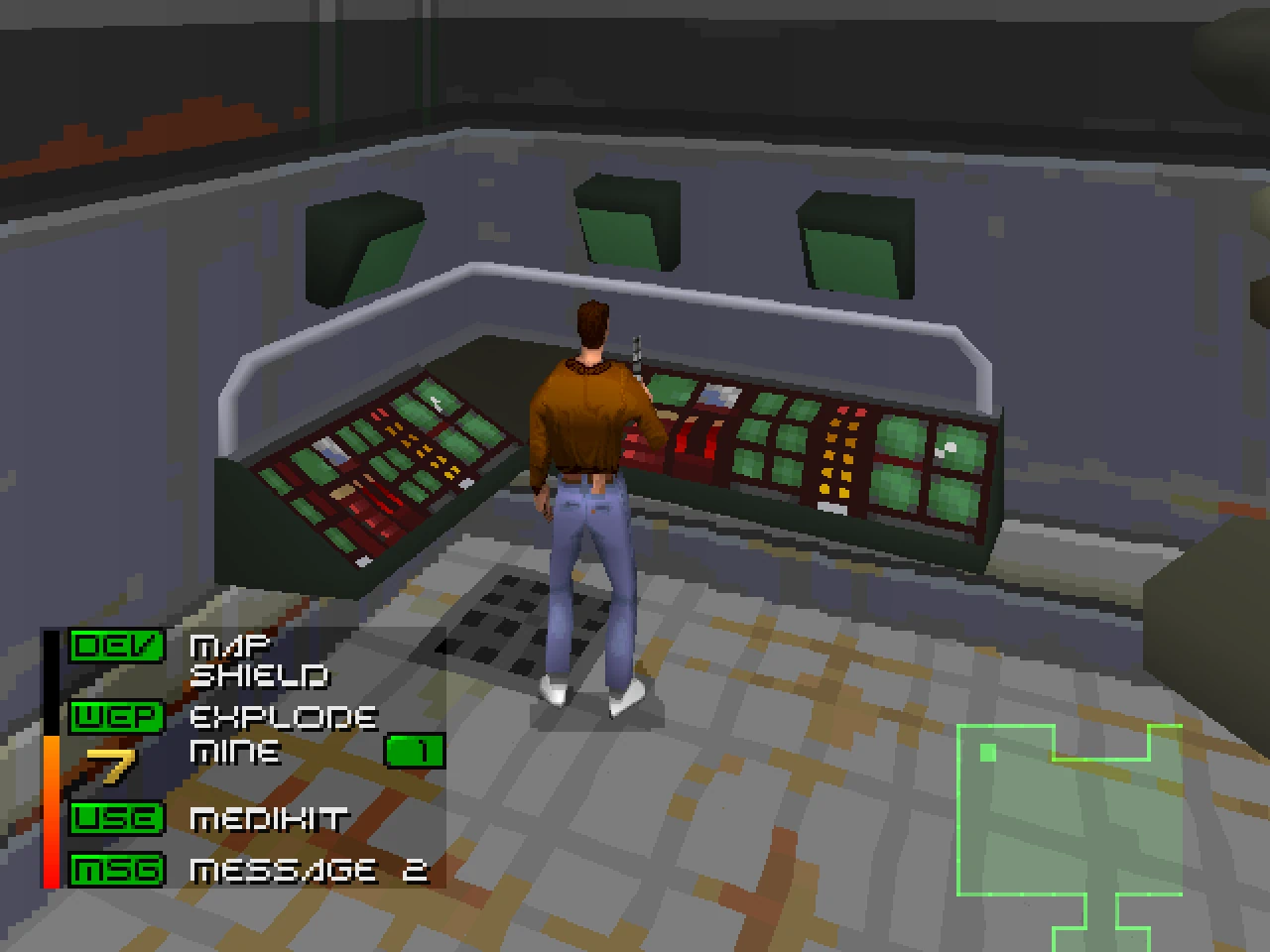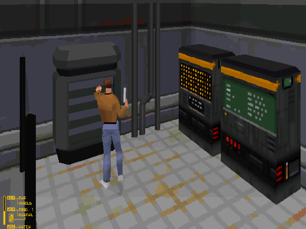 Si j'ai un conseil, préférez la version PlayStation, moins jolies certes, mais nettement plus abordable retrouve également ce qui faisait la richesse du jeu d'origine, à savoir ce savoureux mélange d'exploration, d'action et d'énigmes. Et en effet, dans Fade to Black, chaque niveau s'apparente à un mini labyrinthe, qui nous imposera de bien fouiller les lieux ainsi que plusieurs allers-retours. Cependant, on sent bien que le software manque un peu de finitions, car il n'est pas rare de courir et de se stopper net alors qu'on est à 40cms d'une table, ou alors que le jeu nous impose d'être exactement en face d'un placard pour le fouiller, ou d'un interrupteur pour l'actionner. Encore une fois, ce type de "réglages" auraient dû être rectifiés lors du passage sur PlayStation.