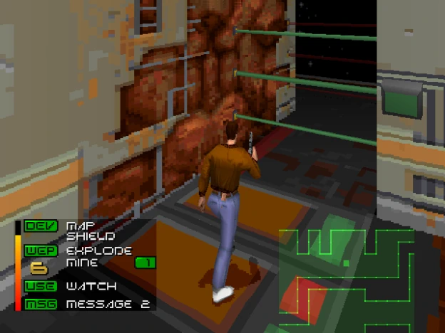 Les graphismes sont vraiment moches, c'est un fait. Maintenant ne vous arrêtez pas à ça, car l'aventure en vaut la peine... bugs sont omniprésents, la 3D a la bougeotte, les textures sont parfois si détaillées (parfois même animées, une belle performance soit en passant) que l'ensemble est complétement fouilli. Après la baffe graphique de Flashback, on attendait beaucoup de cette suite et il est clair que niveau maniabilité et graphismes, c'est un échec ! D'ailleurs, je veux bien que la révolution de la 3D imposait que la plupart des jeux soient justement en 3 dimensions, mais certains titres auraient mieux fait de rester en 2D (comme Contra, Thunder Force ou Street Fighter). Et je suis sûr qu'un simple Flashback 2, en 2D et en vue de profil, poussant la console dans son rendu (à l'image d'Oddworld, qui est magnifique) aurait eu plus de succès !