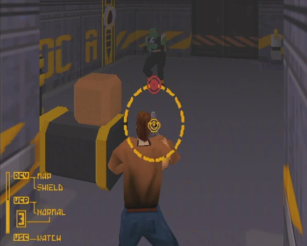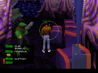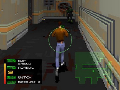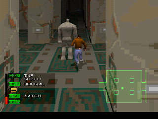 D'ailleurs, très vite vous trouverez que la jouabilité est exécrable ! Si on n'en est pas au point d'un Excalibur 2555 AD, il est clair que Conrad est extrêmement lourd à déplacer et une fois lancé, il accuse une inertie assez agaçante. Le pire étant les phases de combats, où la vue passe à la première personne (vue FPS) : c'est lent et imprécis, soit tout l'inverse de nos ennemis. Entre cette jouabilité franchement pesane, des ennemis pas toujours faciles à viser, des niveaux souvent retors et énormément de pièges capables de nous tuer en un coup, croyez-moi vous en viendrez vite à surexploiter la quick-save ! Malgré tout, on finit par s'y faire, par se plier aux exigences de la maniabilité, et on trouve le jeu vraiment intéressant à parcourir.