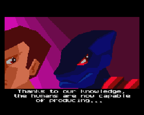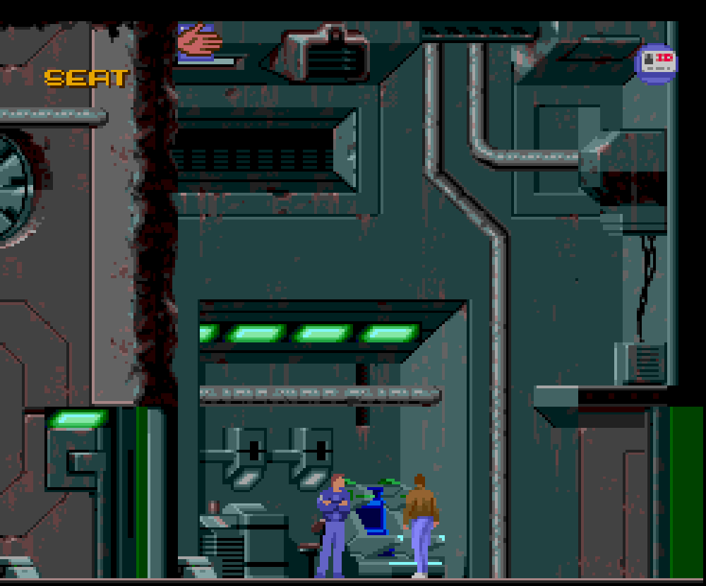 Pour mieux vous faire une idée du résultat, retrouvez ci-dessous la cinématique d'introduction, ici en version "classique", soit celle qu'on retrouve dans la plupart des anciennes éditions (nous rentrerons dans les détails plus tard). Et le jeu ne se contente pas de nous proposer une magnifique intro, ainsi qu'une superbe fin (qui n'est pas sans rappeler le premier film Alien, où Ripley va dériver dans l'espace en hyper-sommeil... décidément on aime le cinoche chez Delphine Software ^_^). En réalité, on assistera béat d'admiration (là c'est l'ado de 16 ans que j'étais qui parle, lorsqu'il a découvert le jeu sur Mega Drive durant l'année 1993) devant notre personnage qui ramasse un objet, recharge son bouclier ou encore active un mécanisme.
