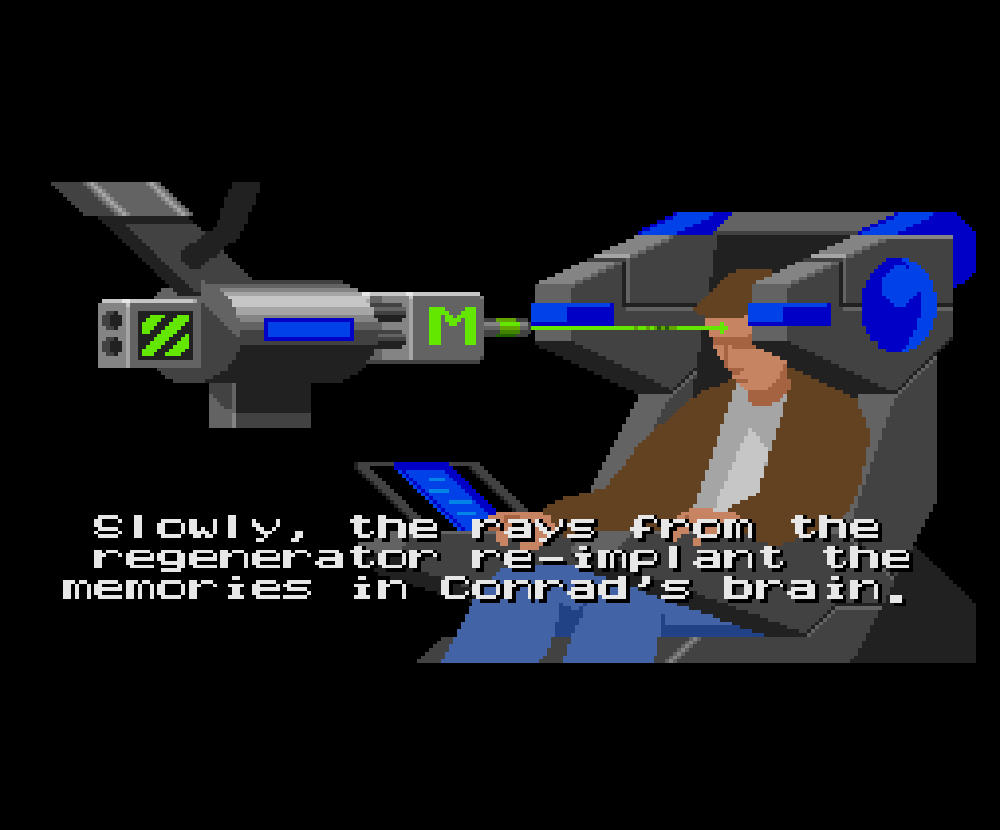 Les cinématiques ont été rendues possibles grâce à l'utilisation de polygones à plat... mais ça demande pas mal de ressources CPU, voilà pourquoi elles sont toujours cadrées avec Flashback, les développeurs ont été plus visionnaires puisque ce sont de véritables cinématiques en pseudo-3D qui sont proposées. Rendues possibles grâce au génie de ses développeurs, les cinématiques sont réalisées à base de polygones à plat (en 2D donc car contrairement à ce qu'on pourrait penser, un polygone n'est pas forcément en 3 dimensions), qui sont donc gérées en temps réel. C'est le processeur central qui va gérer les animations, en calculant les vecteurs et les polygones qui formeront les objets et les personnages à l'écran. C'est aussi parce que le CPU est si sollicité, que certaines versions s'en sortent mieux que d'autres. Grâce à ce procédé qui demande une bonne puissance de calcul mais finalement peu d'espace mémoire, Flashback a pu proposer ce qu'aucun autre jeu n'avait fait avant (Another World mis à part) : offrir des cinématiques superbement mises en scènes, sans pour autant avoir recours aux capacités de stockage d'un CD-Rom. Réalisez-vous quel exploit technique ce fut pour l'époque, et à quel point c'était avant-gardiste ?