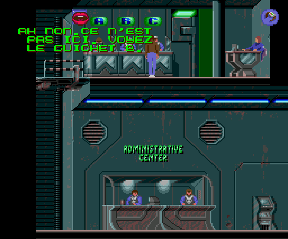 En jeu, Flashback n'a pas bougé d'un pouce ! C'est plutôt une bonne nouvelle non ? nouvelle fois, si vous achetez la version américaine, vous aurez les textes en anglais et en français. Cependant, les vidéos (quelque soit la région) sont uniquement doublées en anglais (comme sur Mega-CD). Et la tuile, c'est que les sous-titres ne fonctionnent pas ! Ainsi que ce soit dans notre version EURO locale ou dans la version US, tous les textes "in game" sont bien en français mais les vidéos elles, sont uniquement dans la langue de Shakespeare, ce qui est extrêmement frustrant et bride la compréhension des dialogues doublés.