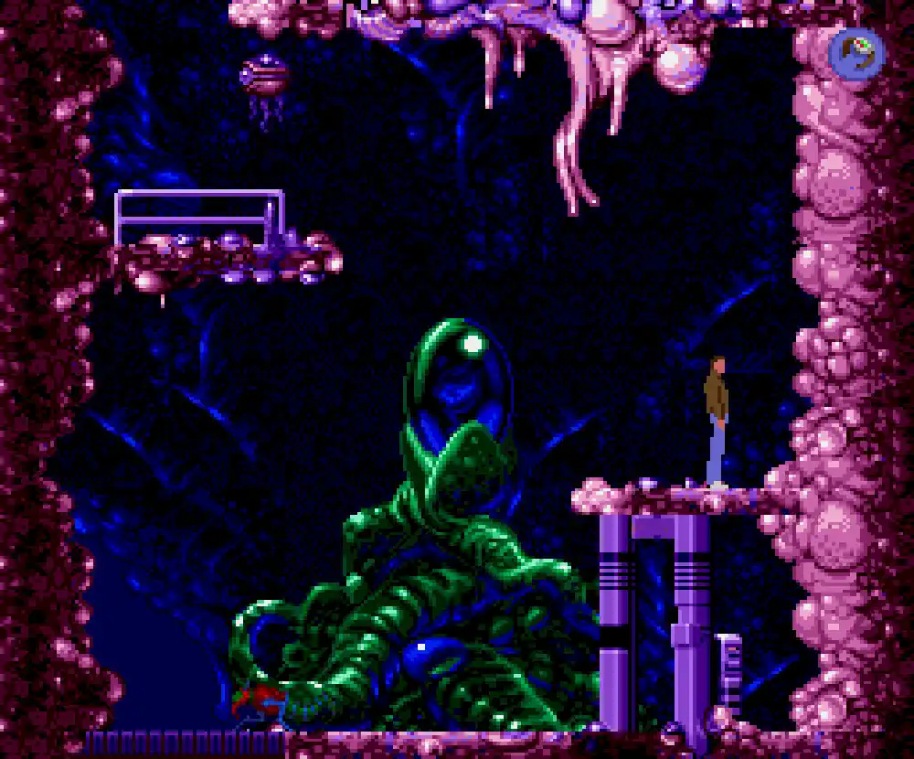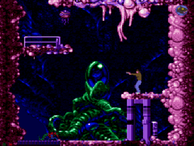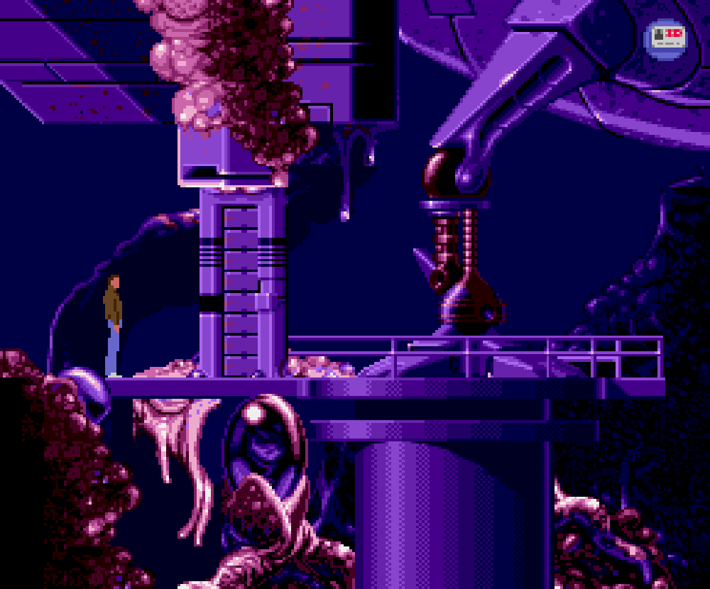 Mais là, passe encore, car en arrivant sur Terre, vous serez face aux flics et jamais de ma vie j'ai autant souffert face à eux ! Le pire c'est qu'on enchaine avec des passages atrocement difficiles par la suite, où des pièges nous "one shot", nous forçant à utiliser sans cesse le Rewind. Le point culminant est évidemment sur la planète des Morph (le dernier niveau) dont plusieurs passages s'apparentent à du "die & retry" et croyez-moi, jamais Flashback n'a été aussi difficile, c'est vraiment n'importe quoi ! Dans l'incapacité de finir le jeu et à 2 doigts de jeter mon pad contre un mur, j'ai rebranché ma Mega Drive et la différence m'a sauté aux yeux !