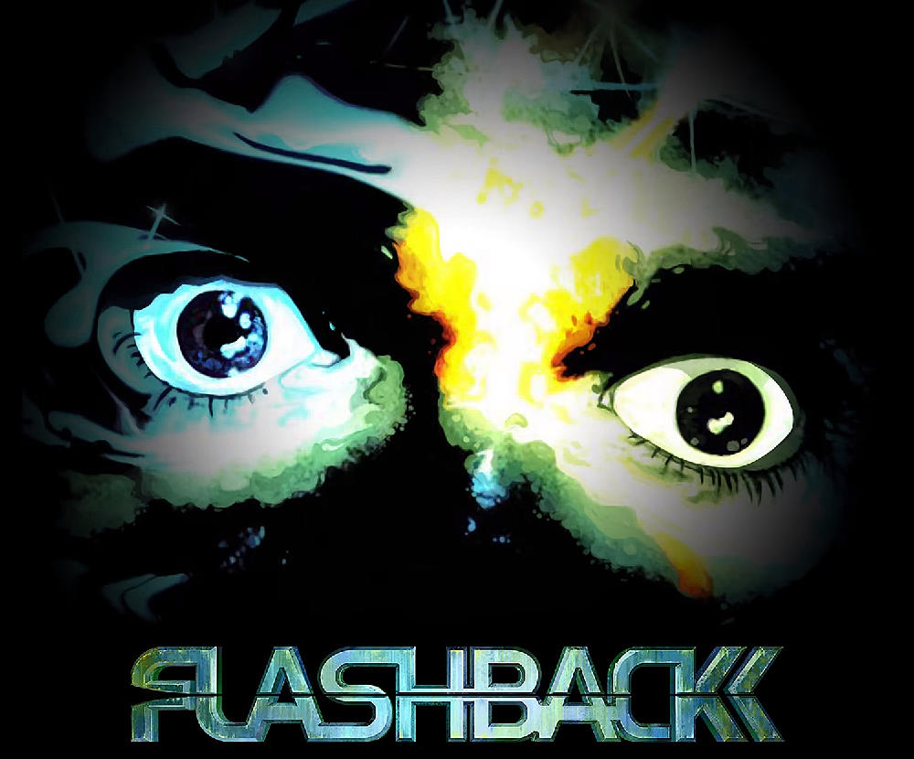 Le scénario de Flashback s'est beaucoup inspiré du cinéma américain tels que Total Recall, Running Man, V ou encore Invasion Los Angeles de Flashback nous raconte qu'en 2142, Conrad B. Hart (un agent du bureau d'investigations Galaxia), est frappé d'amnésie. Par instinct de survie, il s'échappe d'un complexe inconnu mais son véhicule est rapidement abattu et il se retrouve au cœur de la jungle de Titan (une lune de Saturne) lorsqu'il reprend connaissance. Non loin de lui se trouve un curieux boîtier générant une image holographique le représentant et lui indiquant que s'il veut sauver sa peau, il doit retrouver son ami Ian à New Washington. Non sans difficulté, Conrad arrive enfin à retrouver son ami, puis assis dans un cérébro-reconstructeur, les souvenirs lui reviennent peu à peu.