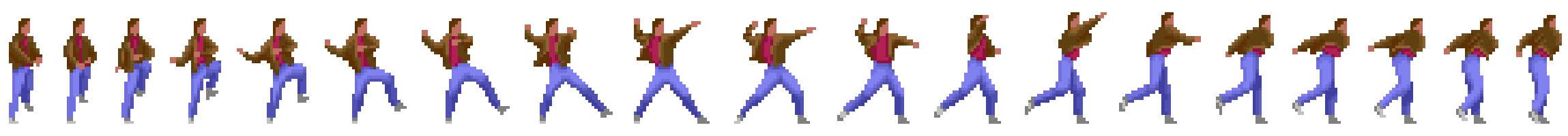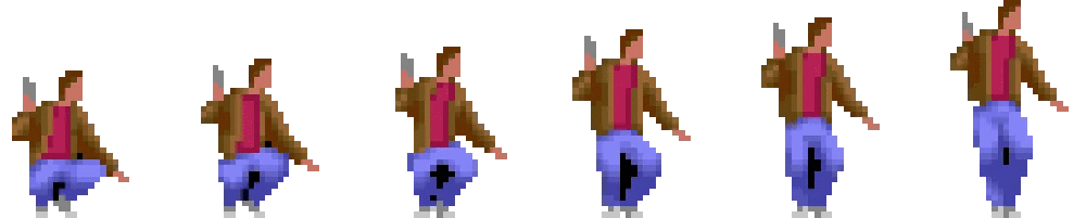 Les animations de Conrad sont d'une fluidité et d'un réalisme incomparable ! vous le savez peut-être déjà, mais à l'époque, l'animation d'un personnage de faisait à base de "tuiles" (tiles en anglais) et pour rendre ses animations le plus décomposées possible, elles avaient besoin de beaucoup de tuiles. Voilà pourquoi, généralement dans un jeu 2D de ce début des années '90, la plupart des sprites sont décomposées en 2 à 4 frames en moyenne, par seconde. Généralement ça suffit amplement (surtout si on est bon en pixel art et qu'en seulement quelques images on arrive à faire en sorte que l'animation paraisse bien décomposée, notamment grâce à quelques astuces de programmation) mais pour Flashback, les développeurs ont voulu marquer le coup, faire en sorte que leur jeu soit aussi caractéristique qu'inimitable. Pour l'anecdote, Paul Cuisset (lors d'une interview) a expliqué à quel point le processus de création des animations "faites main" était fastidieux. Il raconte :