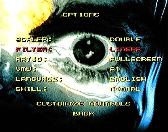 Le menu des options est plus copieux que d'habitude avec en premier lieu la possibilité de configurer pas mal de filtres graphiques, ainsi que la possibilité d'afficher son jeu en 4:3 comme en 16:9 (qui n'écrase que modérément l'image). D'ailleurs les filtres graphiques, issus du PC, sont bien plus efficaces que les lamentables options qu'on nous propose généralement sur consoles. Les textes sont disponibles en 5 langues (français, anglais, espagnol, italien et allemand) et on retrouve comme d'habitude les 3 niveaux de difficulté et les fameux passwords.
