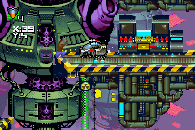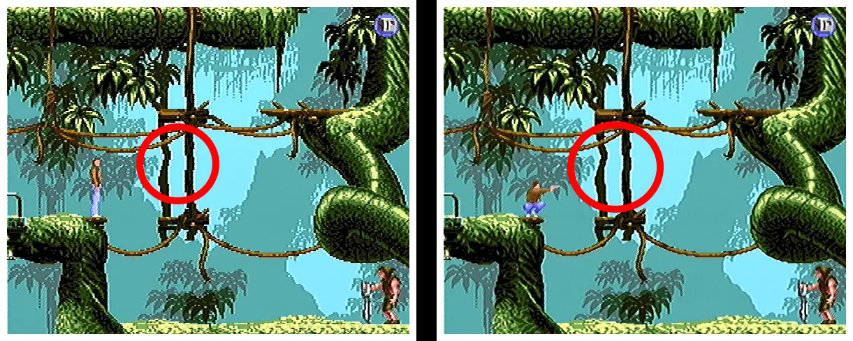 C'était surtout vrai à l'époque, car les longues sessions de jeu (notamment lorsqu'on jouait sur la TV familiale du salon) étaient rares. Dernière petite fonction pour aider les joueurs : disséminées dans le décor, des bornes de sauvegarde mémorisent votre position et votre avancement dans le niveau. C'est l'ancêtre du bon vieux "checkpoint", d'ailleurs souvenez-vous que cette sauvegarde n'en est pas vraiment une puisqu'elle est volatile, temporaire (si vous quittez le jeu, elle s'effacera). Ce système est valable sur tous les supports, même le PC ou le Mega-CD qui pourtant possédaient une sauvegarde interne. Tous... sauf les récents portages de 2018 (Switch, PS4 et Xbox One) où ces bornes sauvegarderont "réellement" votre avancée, mais en contrepartie, on perd les passwords. Il est donc impossible de sauter un niveau... Pas sûr que ce soit finalement une bonne chose.