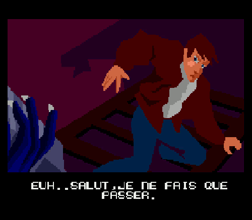 Que ce soit sur Amiga ou plus généralement sur les consoles européennes, le jeu tourne donc en 50 hz. Alors certes, il est un petit peu plus lent qu'en 60 hz, mais la différence reste minime et en contrepartie nous obtenons les sous-titres en français. Et oui, fier de ses origines et développé par un studio parisien, le jeu est intégralement traduit dans notre belle langue. Un excellent point pour l'accessibilité du titre, même si avouons-le, le niveau d'anglais reste scolaire et surtout que les textes restent finalement assez rares.