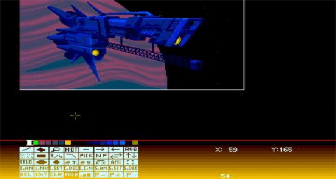 "On trouvait un endroit approprié et avec notre caméra, on filmait Denis Mercier en train de faire ses mouvements, puis on revenait au studio. A l'époque, la Motion Capture n'existait pas, on ne pouvait pas numériser les images facilement. Ce qu'on faisait, c'est qu'on mettait la pause sur le magnétoscope et on utilisait des celluloïds (des feuillets transparents utilisés dans le dessin animé notamment) sur lesquels on dessinait la forme au feutre. Une fois qu'on avait dessiné le celluloïd, on le mettait sur l'écran de l'ordinateur où Deluxe Paint tournait, ensuite on redessinait la forme à partir de ce qu'on avait recopié/décalqué.