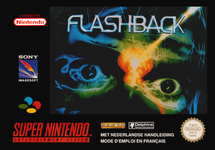 Avant d'entrer dans le vif du sujet, il faut savoir que le jeu se nomme généralement Flashback "tout court", sauf aux Etats-Unis où il prend le nom de Flashback : The Quest for Identity, sans doute pour mieux se démarquer des 2 films ou des chansons/albums qui portent déjà ce nom. On notera par ailleurs que les américains ont voulu changer le design de la boite, pour un style plus proche des Comics alors qu'en Europe nous avons (selon moi) un design plus énigmatique et futuriste. Et ce n'est pas tout : aux Etats-Unis, les versions Genesis, Super NES et SEGA CD (les noms des consoles Mega Drive, Super Nintendo et Mega-CD là-bas) comportaient une bande dessinée dans le manuel afin d'expliquer l'histoire initiale. Les versions Mega Drive et Super Nintendo européennes (dites PAL) n'intègrent pas cette BD, et se contente d'un simple texte. On peut sans doute l'expliquer par le fait que les notices EURO étaient traduites en plusieurs langues et que donc, il aurait fallu un fascicule comportant un grand nombre de pages, afin de proposer la BD dans les 6 langues, alors qu'aux Etats-Unis, il n'y en a qu'une seule. Alors certes on aurait pu crier à l'injustice à l'époque, mais il faut bien se souvenir que personne n'était au courant de cette différenciation (puisqu'Internet n'existait pas) et qu'au final, on peut comprendre pourquoi ils ont fait un tel choix.