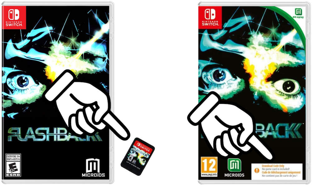 D'ailleurs, c'est sans doute parce que JoshProd est venu demander le droit de porter le jeu sur DreamCast, que Microids s'est mis en tête de faire son propre portage, sur les consoles les plus récentes (rappelons que le jeu est sorti en 2018, les Xbox Series et PS5 n'étaient pas encore sorties, mais Flashback reste tout à fait compatibles avec les machines les plus récentes). Parlons-en justement de ce portage. Si sur PS4 et Switch nous avons eu droit à une édition physique (même si le Blu-Ray de la version PS4 est vraiment vide avec moins de 500 Mo de données), comme toujours la Xbox One sent le gaz et n'a reçu qu'une version dématérialisée (une version physique était visiblement prévue mais elle n'a jamais vu le jour). En parlant de démat', comme souvent Nintendo pète plus haut que son cul en vendant le jeu 15€ alors que sur les 2 autres consoles, il ne coûte que 10€.