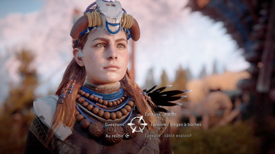 Horizon est un jeu inspiré par bien des titres dont il plagie des parcelles de gameplay. Heureusement ce melting-pot fonctionne avec beaucoup de panache allons le voir tout au long de ce test, pour développer Horizon, Guerrilla s'est inspiré de bien des titres à succès. On peut citer Assassin's Creed, Uncharted, Mass Effect, Tomb Raider et plus encore Far Cry. Loin d'être un jeu linéaire, Horizon est un open-world qui copie sans honte Far Cry dans son déroulement et le contenu de son immense map. Mais avant d'en parcourir le moindre recoin, il faudra discuter avec pas mal de monde et ainsi déverrouiller les nombreuses missions principales et secondaires qu'offre le jeu (à noter qu'aucun PNJ, même très secondaire, n'est cloné sur un autre, c'est suffisamment rare pour être précisé). Cette fois inspirés de Mass Effect, les dialogues permettent d'en apprendre plus, ou simplement de passer à l'essentiel, via une roue des choix.