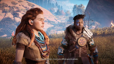 Mais globalement, les bugs se font rares et je re-souligne la prouesse des développeurs de nous offrir un jeu si stable et "propre" avec un patch final qui pèse moins d'1 Go, une preuve supplémentaire que leur titre était déjà, à l'origine, bien optimisé. Horizon fait montre d'un grand souci du détail : les personnages, même les moins mis en avant, sont toujours bien détaillés et avec des animations plus que correctes. La palme revient bien entendu à notre héroïne, qui arbore des expressions faciales très détaillées, une chevelure non statique (ce qui est également valable pour les autres protagonistes, bien que peu d'autres personnages arborent une telle tignasse ^.^), quant aux décors, tous sont absolument magnifiques !