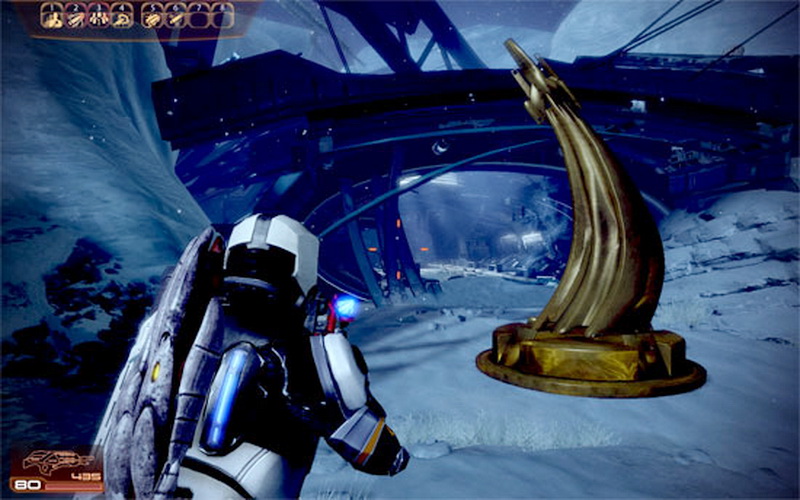 Bon soyons clair, si vous avez joué à Mass Effect 2, même rien qu'à la démo, je ne vous apprends rien en vous disant qu'au tout début du jeu, le vaisseau Normandy se fait littéralement défoncer par un croiseur Récolteur. C'est donc l'occasion de retourner sur le site du crash pour une séquence émotion. Pas de quoi tirer la goutte, l'expérience tourne très vite court puisqu'elle peut se torpiller en 20 secondes. Au minimum Shepard doit déposer un monument commémoratif et une fois fait, on peut se barrer direct. On est seul pour faire ça (pas de coéquipier) et ça va donc très vite. On fouinant un peu il est possible de récupérer les 20 plaques d'identification du personnel mort (comme le navigateur Pressly), ce qui vous permettra de récolter 200 points d'XP supplémentaires (10 par plaque). L'unique bonne nouvelle c'est qu'un peu partout sont disposés des conteneurs d'ézo, le minerai le plus rare des 4.