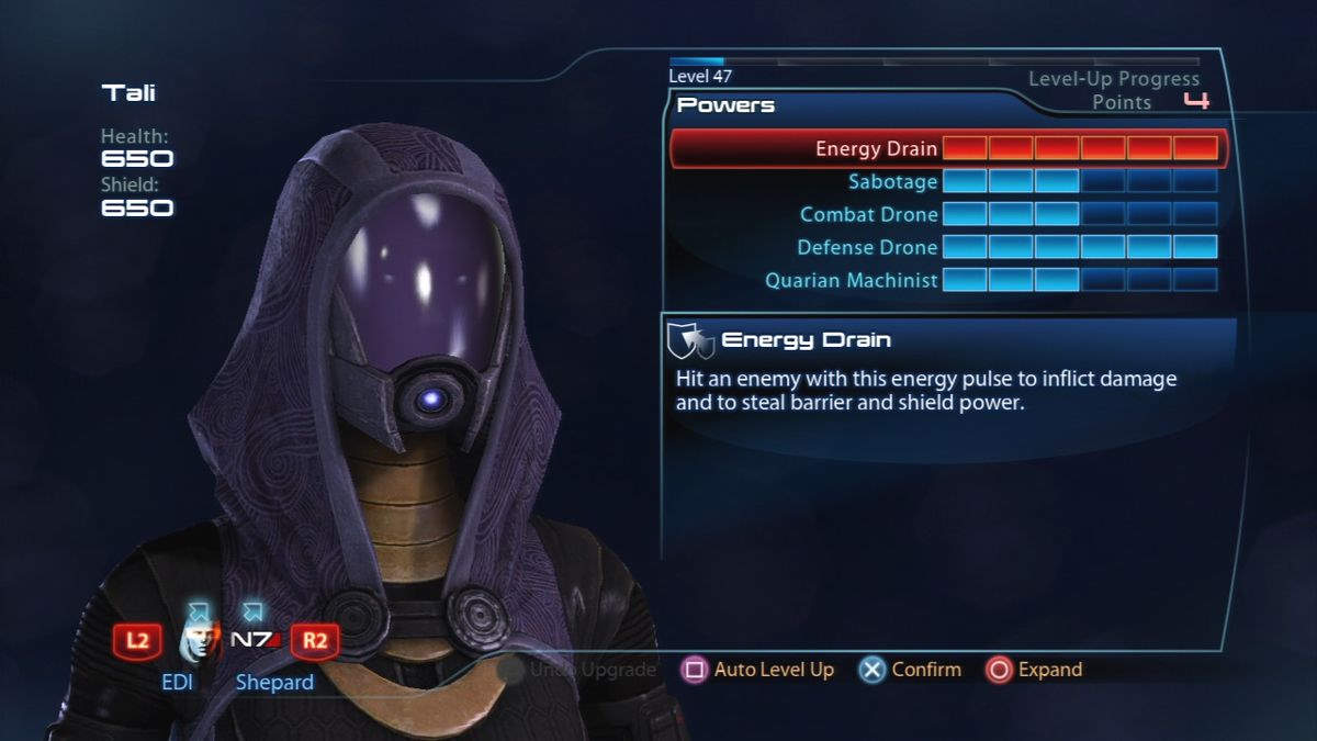 Globalement, le gameplay a été affiné et l'Omni-lame est un sympathique gadget pour le corps-à-corps détail un peu navrant, on gagne de l'XP pour tout et rien, genre +25 points lorsqu'on pioche dans une pharmacie pour récupérer du médigel. Pire encore, il n'y a plus du tout de scènes de piratage et donc, de mini-jeux. Lorsqu'on pirate l'accès à une porte, l'Omni-tech fait ça tout seul comme un grand (d'ailleurs à mon goût, Shepard se débrouille un peu trop bien avec les technologies, ou alors Tali lui a donné des cours ^.^). Heureusement tout n'est pas noir, il y a aussi quelques belles nouveautés.