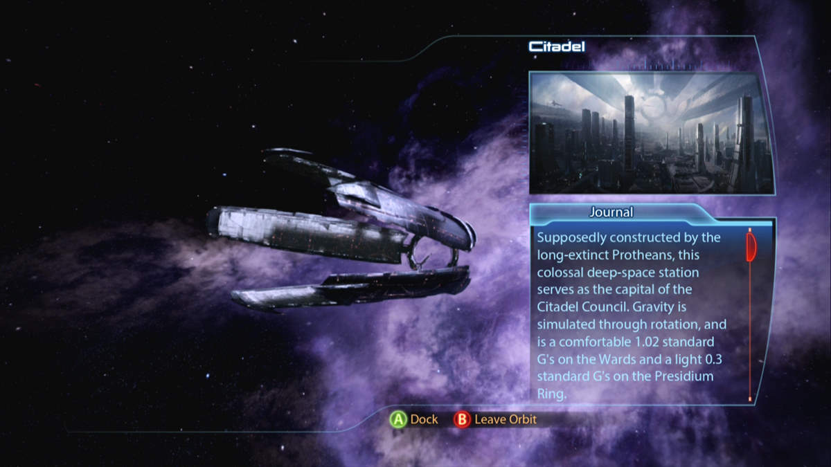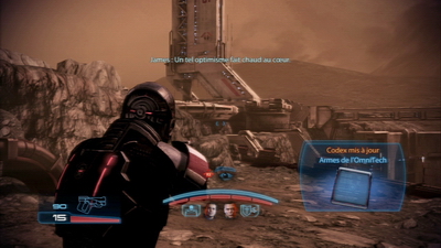 Le doublage est un peu moins bon qu'autrefois, mais rien de dramatique, je vous rassure. Sauf peut-être pour Mordin, dont le doubleur a fait n'importe quoi le doublage profite du casting originel sur la plupart des personnages. En effet des identités un peu secondaires comme IDA ou Avina n'ont plus la même voix mais fort heureusement, les personnages principaux répondent présent à l'appel. C'est d'ailleurs un véritable plaisir d'avoir une telle continuité, jusque dans les Codex. Malheureusement, j'ai ici aussi quelques regrets et je commencerai par les infos de la Citadelle.