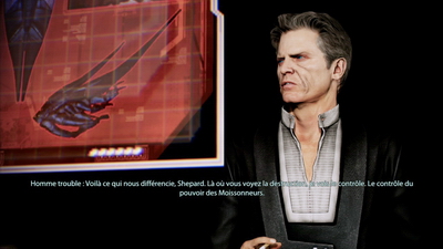 La plupart du temps les dialogues sont réduits à 2 choix... c'est assez frustrant encore, ces fameux choix de dialogues se sont drastiquement réduits. En général nous n'avons que 2 possibilités (soit plus pragmatique soit plus conciliante) mais la plupart du temps le résultat final est le même. Encore mieux, les dialogues sont parfois longs et on sent bien que Shepard récite son texte sans trop nous demander notre avis. En somme, beaucoup de passages auraient mérités qu'on nous demande de faire un choix, or le développeur a zappé pas mal de ces interactions. Ainsi sur une longue discussion on fera peut-être 2 ou 3 choix de dialogue, là où autrefois on en aurait fait le double voire le triple. Imaginez ma frustration, moi qui justement, aime avoir le contrôle et chiner la moindre possibilité. Alors autant vous le dire, si sur certains points BioWare a assuré, il est clair qu'au niveau des dialogues, ils ont merdés ! Après avoir enchainé les 2 premiers épisodes, croyez-moi que ça fait un choc et ceux qui n'ont rien remarqué, doivent sans doute avoir oublié à quel point le joueur étaient autrefois impliqué.