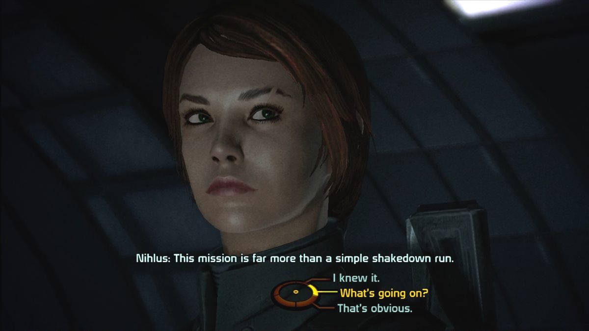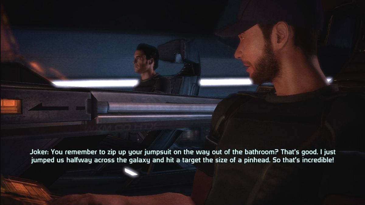 Les dialogues dynamiques sont particulièrement agréables et riches en ramifications ce qui est de la réalisation, c'est écrit nulle part mais Mass Effect tourne sous Unreal Engine 3, le fameux middleware d'Epic Games (un moteur 3D qui est décidemment partout). Avant toute chose, il faut savoir que le jeu n'est pas parfait, loin de là. Si les loadings sont minimisés au maximum, on ne comprend absolument pas pourquoi les ascenseurs (qui visent à faire attendre pendant un chargement) sont si interminables ! Ils sont "réalistes" et donc lents, le pire étant qu'il y en a partout ! Ensuite le jeu manque souvent de finitions, notamment lors de cut-scenes un peu secondaires.