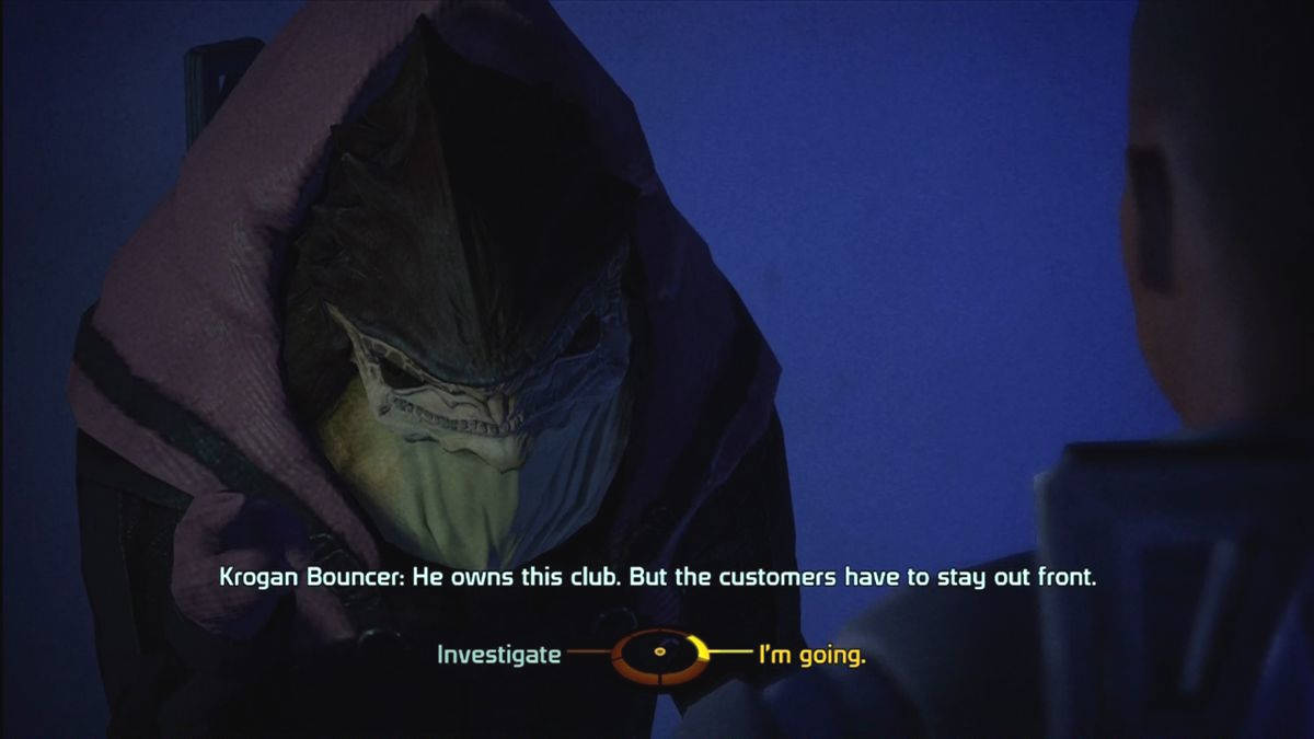 Les raisons sont simples : un univers matiné de science-fiction, un gameplay orienté action façon third-person-shooter (TPS) et un scénario intéressant... déjà sur le papier ses sirènes me chantaient une douce chanson. Il est vrai que j'ai vraiment pris mon temps avant de m'y mettre (il s'est passé presque 3 ans entre la sortie du jeu et le moment où je rédige ces lignes) et alors que Mass Effect 2 fait ses entrées sur PS3, moi je décide enfin de me lancer dans l'aventure. Oui, puisqu'il n'y a que les cons qui ne changent pas d'avis, moi je me lance dans le test d'un RPG (dehors il ne neige pas, il pleut, ça compte ?). Au niveau du pédigrée, je ne m'attaque pas non plus à un jeu de seconde-zone et BioWare est derrière des titres comme Baldur's Gate, Neverwinter Nights, Jade Empire, Star Wars KOTOR ou plus récemment Dragon Age Origins. Je n'y ai jamais joué mais leur renommé les dépassent, ce qui me met en confiance.