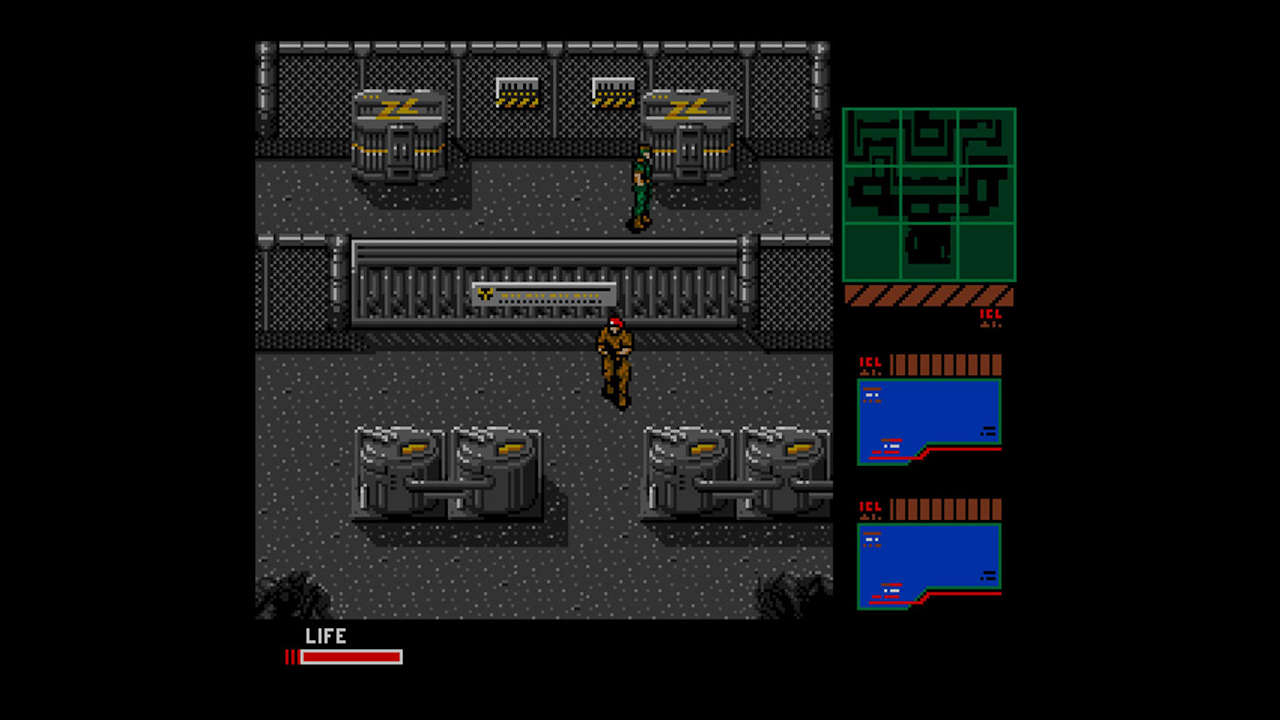 Lors du portage inclus dans MGS3 Subsistence, Konami avait consenti à un bel effort en matière de difficulté. On retrouve donc ce choix entre une difficulté "facile" (sans doute plus adaptée à un public moins patient), ou une difficulté dites "originale". Je ne vais pas vous détailler le jeu en entier, ça reste un vieux titre intégralement en 2D et en vue de dessus, à la difficulté assez élevée, qui vous demandera pas mal d'investigation et une énorme dose de patience. Ce n'est pas que le jeu soit mauvais, bien au contraire, c'est juste qu'à la sortie de cette compilation il a 36 ans. Oui, 36 ans ! C'est juste une éternité et il est clair qu'aujourd'hui on aura beaucoup de mal à encaisser ses mécaniques ultra dépassées ou encore ses graphismes en 2D (8-bits), dont les pixels sont gros comme de pneus.