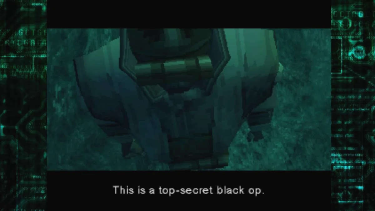 Pour en revenir au menu, il est toujours aussi agaçant de valider avec O (sur PlayStation) ou B (sur Xbox), et de faire retour avec X et A. C'est contre-intuitif, tout simplement parce qu'à l'époque, les japonais avaient configuré leur PlayStation ainsi. Il est dommage de ne pas pouvoir réellement changer ça : si les options permettent de modifier les touches à sa convenance, alors ça ne concorde plus avec ce qui est indiqué à l'écran. Le menu nous permet aussi de consulter le Master Book ainsi que le Screenplay Book. Enfin dernier point intéressant, on peut paramétrer son affichage, y ajouter un wallpaper ou des scanlines, car oui, le premier MGS s'affiche en 4:3, comme à la bonne vieille époque. Cette adaptation simule la présence de 2 Memory Cards, au moment de passer du disque 1 au disque 2, il le fera tout seul (sans même qu'Otacon nous dise de le faire) et malheureusement, nous n'avons toujours pas de sauvegarde rapide (quick save). C'est vraiment dommage car ça aurait apporté beaucoup de confort au jeu, car on ne va pas se leurrer, ce premier épisode 3D fonctionne sous un émulateur et implanter une telle sauvegarde n'avait rien de sorcier.