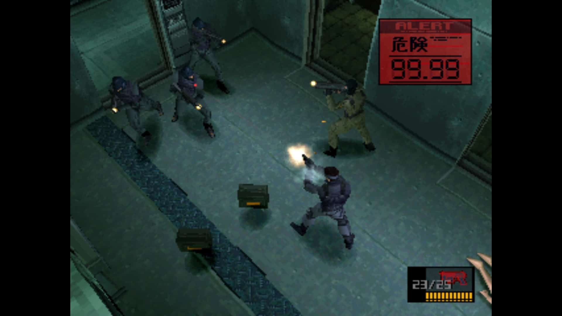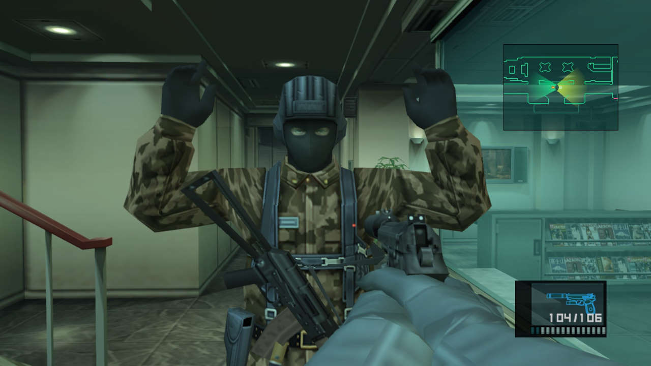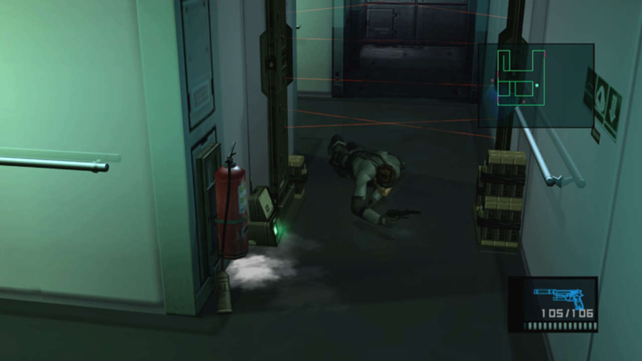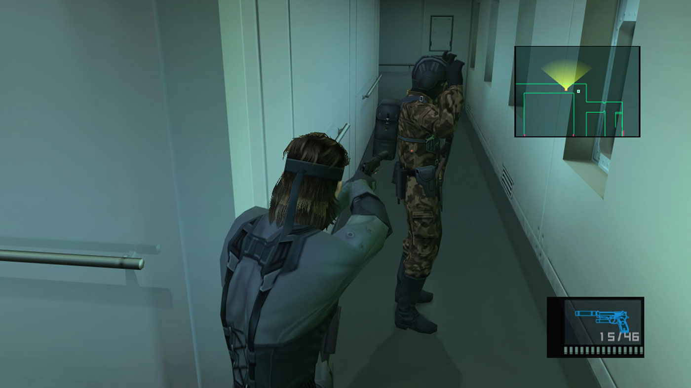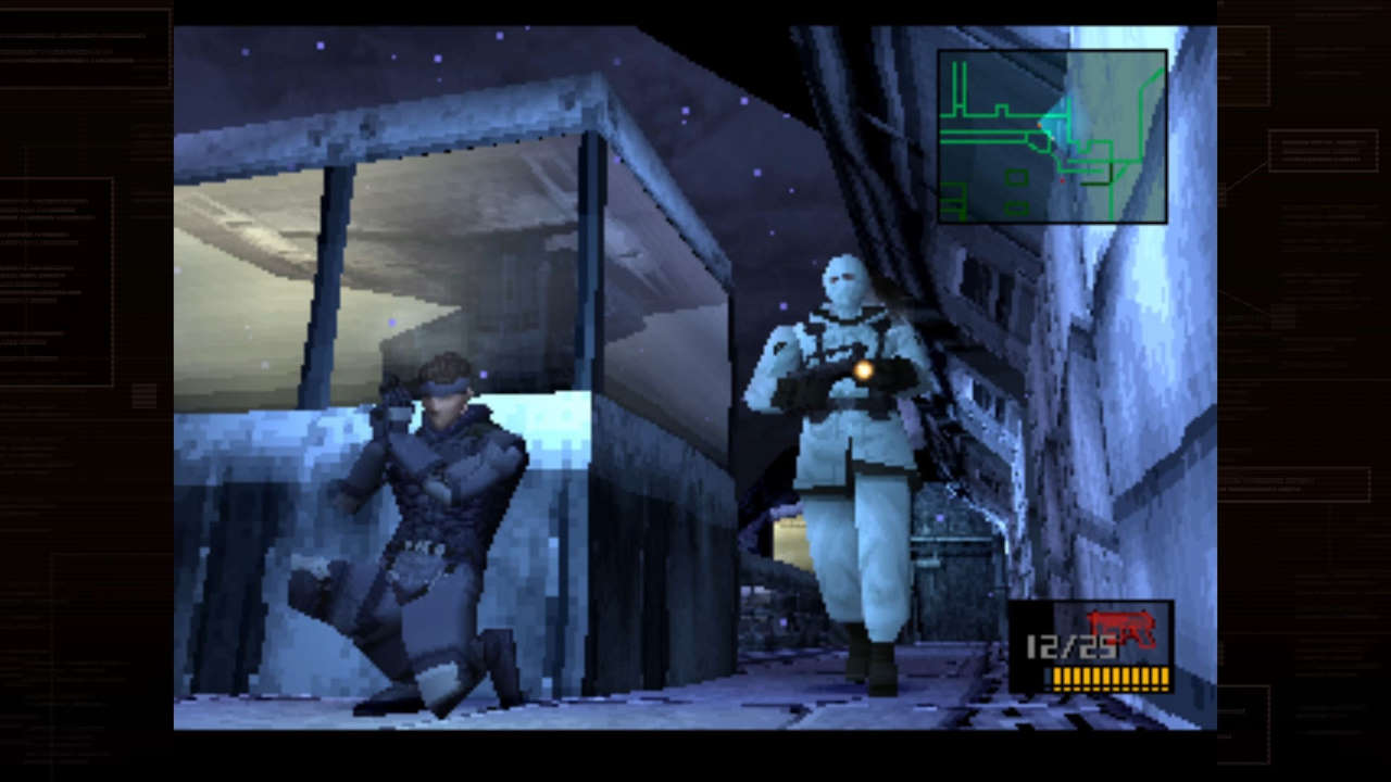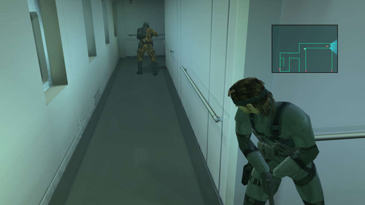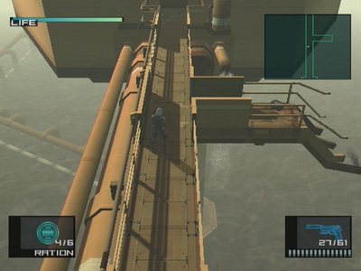 Car ce qu'on peut admettre d'un jeu 2D ne l'est plus ici : entièrement en 3D, il est incompréhensible de ne pas avoir une vue type TPS comme dans Syphon Filter ou Tomb Raider. Ça aurait tellement plus agréable, tellement plus immersif, et surtout on aurait vu les gardes de loin ! Du coup le Soliton (le radar) ne sert qu'à éviter les ennemis proches, si on court dans leur direction, généralement on se fait choper ! Et là bonjour les galères, car comme évoqué, les combats sont mal fichus et inadaptés, donc à moins de pouvoir se planquer quelque part, ce sera Game Over... encore.