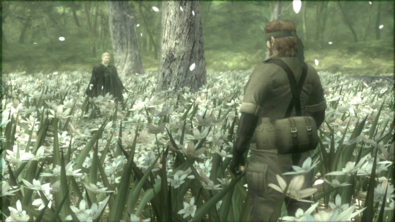 Une fois encore on retrouve le grimaçant David Hayter au doublage de notre héros préféré, un doublage qui semble cette fois un peu mieux travaillé, un peu plus carré, puisque Monsieur Hayter a évité d'en faire des tonnes. Par-dessus tout ça, comme à son habitude le jeu reprend des documents vidéo bien réels (la crise des missiles de Cuba, la mort de Kennedy...) afin d'étayer son histoire de fond. Considéré par beaucoup comme le meilleur épisode de toute la saga, c'est dans ce MGS3 qu'on apprendra comment Naked Snake (alias Big Boss) perdra son œil, pourquoi on l'appelle "Snake", les origines des Metal Gear Rex et Ray, on n'échappe pas à la fameuse scène de torture, et on fera la connaissance de personnages très importants dans la mythologie Metal Gear comme The Boss ou encore Revolver Ocelot, qui est ici tout jeunot.