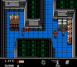 Le scénario, les personnages, l'ambiance sont OK, cependant le level design a été lourdement modifié depuis la version MSX2, au point qu'en comparaison directe, on n'a pas vraiment l'impression de jouer au même jeu. En effet, c'est loin d'être un portage pur et simple, c'est plutôt une réinterprétation du jeu de Kojima. Disponible en version américaine ou japonaise, vous aurez déjà la mauvaise surprise de vous apercevoir que le titre n'est pas traduit en français. Après techniquement, ça reste un jeu NES qui date de 1987, les graphismes sont pas mal, bien que les animations en 2 frames sont vraiment faites à l'arrache. Le jeu nous propose plusieurs réglages de l'écran comme des filtres, un cadrage en 4:3 ou 16:9, des "skins" afin d'habiller les bords ou encore une option de lissage que je vous déconseille d'activer sans quoi l'image devient toute floue.